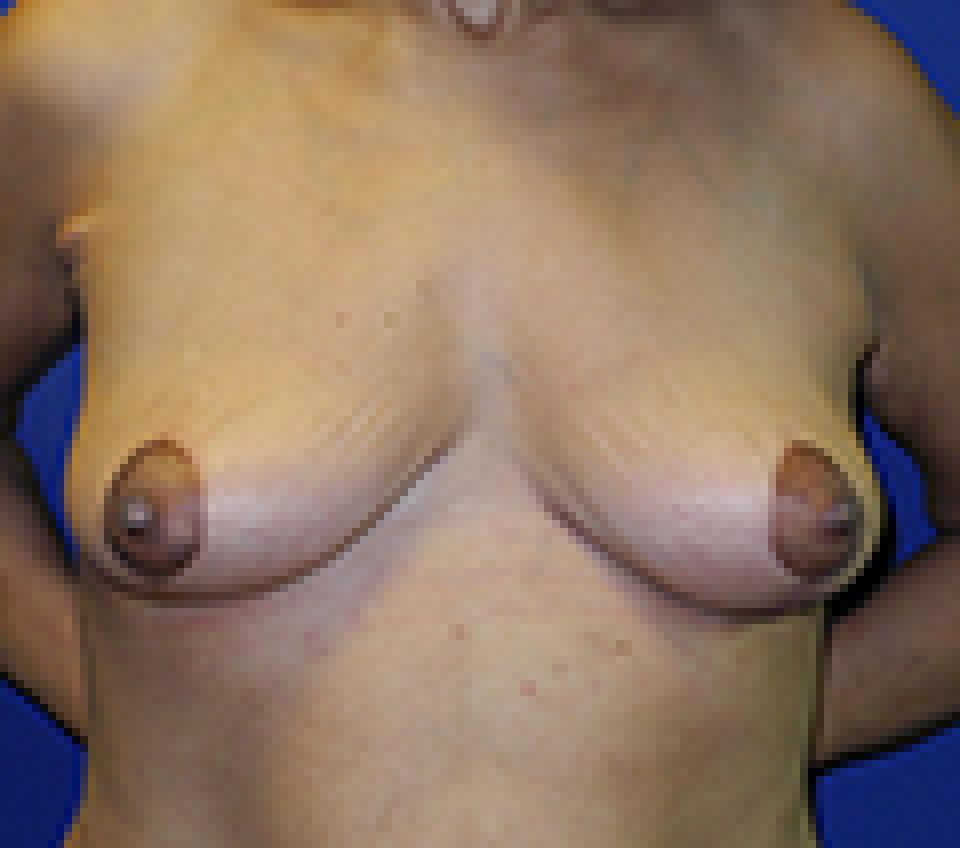 This 49 year old woman reached her plateau weight after losing 100 pounds following bariatric surgery. She is an excellent example of an individual whose breast tissue had been largely replaced with fat and as such, after massive weight loss, there was not enough breast tissue remaining to rearrange into a new breast shape that appeared typical of what one might expect after a breast lift or mastopexy.
